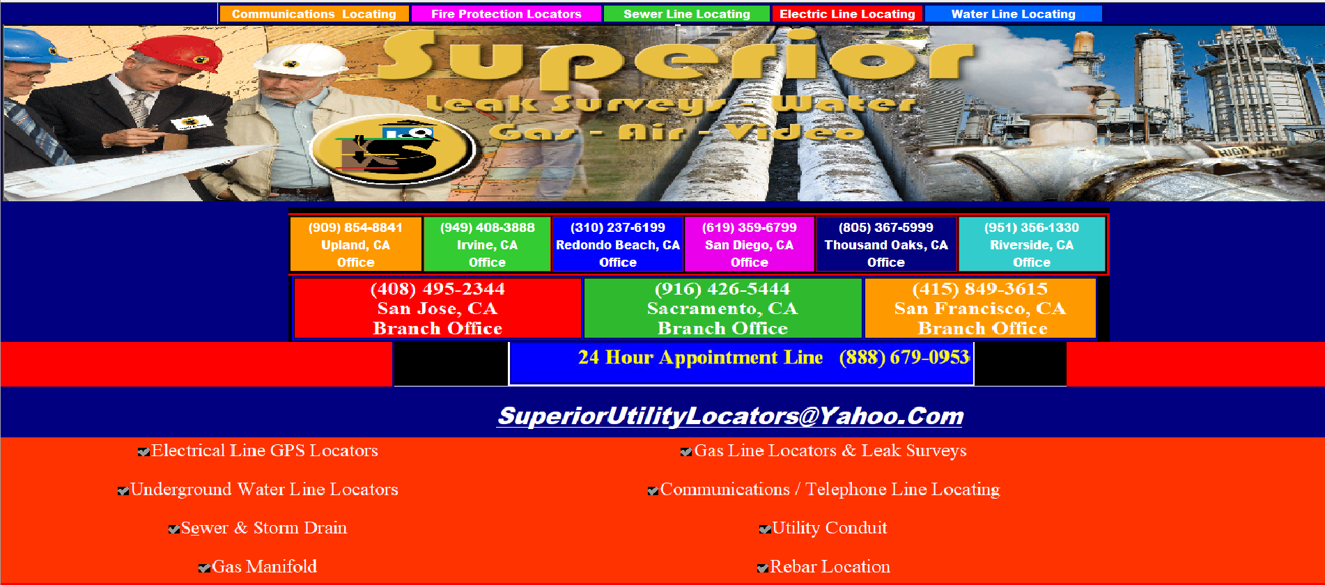Underground Utility Locator Service In Moreno Valley CA. Locating - Ground Penetrating Radar Locate Private And Public Gas, Water, Electric, Sewer, and Telecom Lines. GPRS Performs Underground Utility Locator Service In Moreno Valley CA. Locating, Video Pipe Inspection & Concrete Imaging. Reliable... ‎Contact Us · ‎Services · ‎About Us · ‎Our Clients Sponsored Util-Locate Underground Utility Locator Service In Moreno Valley CA. Locating - Call Before You Dig Util-Locate Provides Complete and Accurate Sewer and Water Pipe Locating Services. The Most Efficient Underground Utility Locator Service In Moreno Valley CA. Detection Services at the Most Competitive Rates. Damage Prevention Leaders. Professional GPR Services. Call Before You Excavate. No Travel Fees! ‎Underground Utility Locator Service In Moreno Valley CA. Line Locating · ‎Gas Pipe Detection · ‎FAQ’s · ‎Ground Penetrating Radar Sponsored Ground Penetrating Radar (GPR) - GPR Scanning Service California pipe and cable locators for the private sector. Listings of Underground Utility Locator Service In Moreno Valley CA. contractors in California. Underground Utility Locator Service In Moreno Valley CA. Locating – 1st Call Underground Utility Locator Service In Moreno Valley CA. Locating - California 1st Call Underground Utility Locator Service In Moreno Valley CA. Locating https:// 1st Call Underground Utility Locator Service In Moreno Valley CA. Locating has professionally trained Underground Utility Locator Service In Moreno Valley CA. locators with experience locating in some of the most difficult and complex conditions. Our ... ‎About Us · ‎Services · ‎Technology · ‎FAQs Private Underground Utility Locator Service In Moreno Valley CA. Locating Services – Southern California ... Private Underground Utility Locator Service In Moreno Valley CA. locating services. Underground Underground Utility Locator Service In Moreno Valley CA. location Experts in Southern, CA. Call us today  Years Experience. Private Underground Underground Utility Locator Service In Moreno Valley CA. Locating - California Private Underground Utility Locator Service In Moreno Valley CA. Locators Private Underground Underground Utility Locator Service In Moreno Valley CA. Locating . The Ground Penetrating Radar was successful in locating many underground utilities. Private Underground Underground Utility Locator Service In Moreno Valley CA. Locators, .. a-plus Underground Utility Locator Service In Moreno Valley CA. locating s Private Underground Utility Locator Service In Moreno Valley CA. Locators we offer the service of non invasively locating buried pipes and cables as well as ... | Underground Utility Locator Service In Moreno Valley CA. Locating California | Underground Wire ... https:// , Underground Service Alert Southern California, Before you dig underground, call for Underground Utility Locator Service In Moreno Valley CA. Locating Services to locate any dangerous ... Plumbers | Yorba Linda A Superor Leak Detection and Slab Leak Repair "They quickly found the leak and had it repaired right away." Plumbing & Leak Detection Specialists 5 "Previously, we had a leak between the walls." Website Plumbers - Plumbing and Leak Detection 5.0 (614) · Plumber Onsite services· Online estimates Website Directions More businesses Map of leak detection ca Non-Invasive Leak Detection Services leak detection ca from From plumbing leaks to pool & spa leaks, the leak detection specialists at are here for you! Visit our site for specials or contact ... California › locations › c... o Exact Leak Detection, Inc. Exact Leak Detection Southern California's premiere leak detection and plumbing company. 24 Hour Emergency Service for homeowners and insurance companies. ‎About · ‎Services · ‎Careers · ‎Contact Us Precision Leak Detection, Inc. Precision Leak Detection https://precisionleak.com Precision Leak Detection, Inc. provides professional leak detection and repair services for homes and businesses throughout the nine (9) San Francisco Bay ... People also ask How much does it cost to have a leak detected? Is leak detection worth it? What are the two most common leak detection tests? What is the price of C system water leak detection? California Leak Detection Specialists | Corona CA leak detection ca from California Leak Detection Specialists, Corona, California. 85 likes. Plumbing Service. Rating: 5 · ‎7 votes Water Leak | Leak Detection Specialist | California leak detection ca from Leak Detection Specialist operates in Carmel, California and specializes in locating pool and spa water leaks, plumbing and sewer leaks, and gas line leaks. California Leak Detection Specialists leak detection ca from of California Leak Detection Specialists "My house is 23 years old. In the last 3 years, my house began having pipe leaking problems. Leak Detection in Los Angeles, CA - "Living in Southern California I believe it smart to know an honest leak detection company if you own a pool. I have used these guys before; several years ... Leak Detection | Fresno, CA: Leak Detection Service ... leak detection ca from Leak Detection is a leak detection service company offering leak detection services in Fresno, CA. For any emergency, call the Sponsored In-home Leak Detection Experts - Licensed Repair Contractor etection Free with repair. Insurance specialists. We can help. Call now! Get Free leak inspection & no call out fees. We fix leak and repair damage. Call now! ‎Trusted, Local Plumber · ‎Do I Have a Slab Leak? · ‎Leak Detection Experts Related searches Underground Water Leak Detector 2... Moen 900‑001 Flo Leak Detect... Water Leakage Detection U... PQWT L4000 Electric Undergrou... Leak Detection. Moen Flo Smart Water Leak Detect... See more leak detection near me leak detection services residential leak detection services water leak detection company reviews leak detection specialist cost More plumbers in Yorba Linda Ca